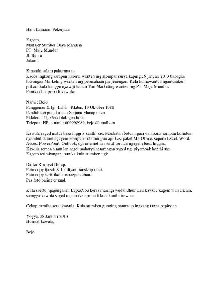 Contoh surat lamaran kerja bahasa indonesia. Mc lamaran adat jawa acara lamaran adat jawa mc bahasa jawa sumber dari. Namun dalam video belajar bahasa jawa yang dipandu oleh mba niken larasati ini ada sekitar 111 kosakata bahasa jawa ngoko dan bahasa jawa krama inggil/krama. Tips membuat surat lamaran kerja yang baik dan benar: Dan marilah kita tutup acara pembukaan workshop standar operasional prosedur sop stain salatiga ini dengan bacaan hamdalah bersama sama billahi taufiq wal hidayah wassalamu alaikum wr wb.